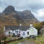 The cottage is located on a hillside on a bend of the A82 in Glen Coe, within the Ben Nevis and Glen Coe National Scenic Area.